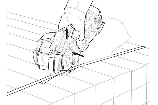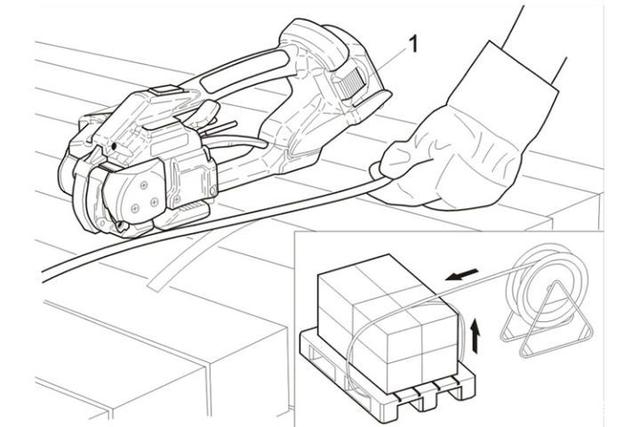 如圖所示,將PP或PET帶防止在正確的位置。