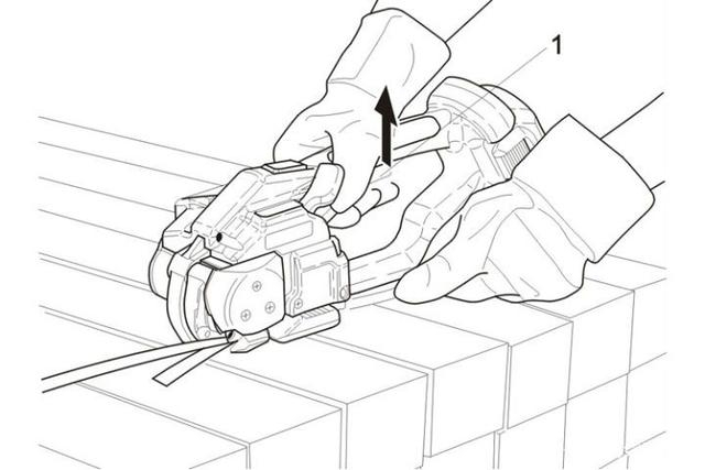 -向右后方回轉(zhuǎn)工具,使其脫離打包帶。