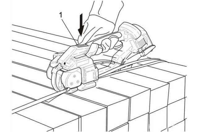 -按下束緊按鈕,打包帶開(kāi)始束緊,直至